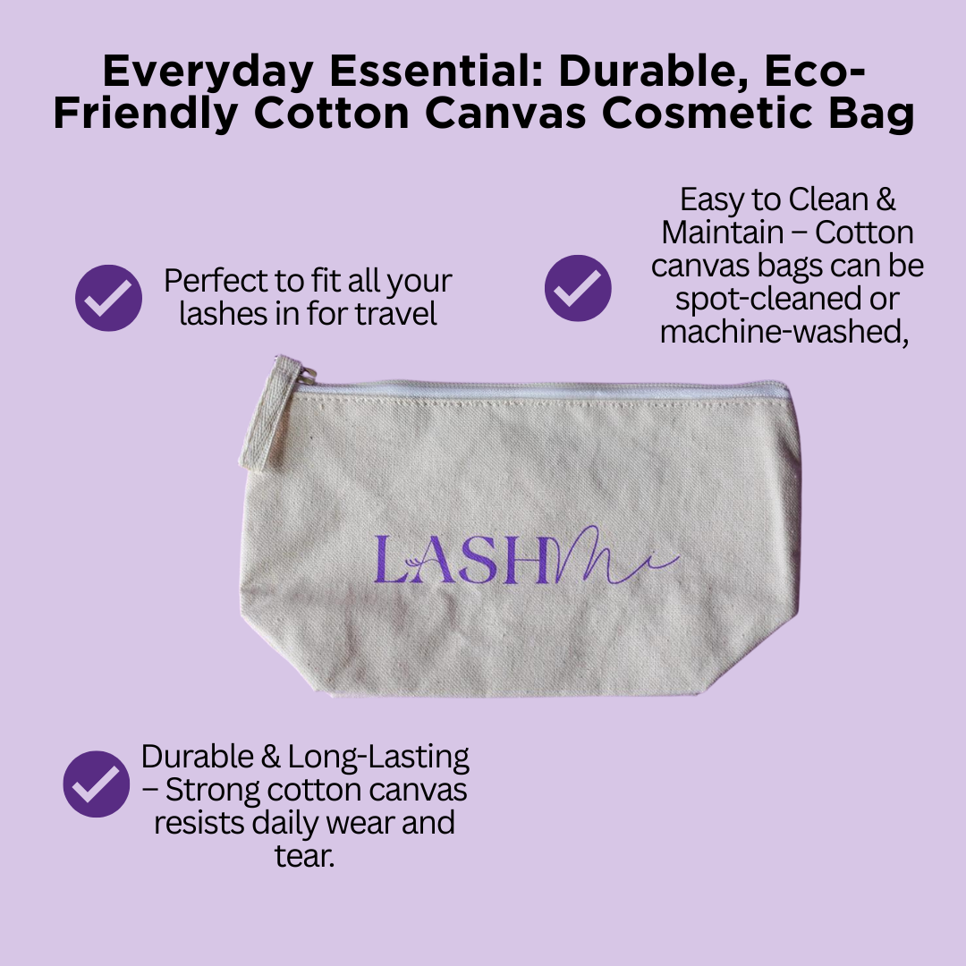 Made in Vietnam, this stylish bag features a durable cotton canvas exterior and a protective 210D PU lining. It’s designed to keep all your lashes and beauty essentials safe and organized, making it perfect for both daily use and travel.
